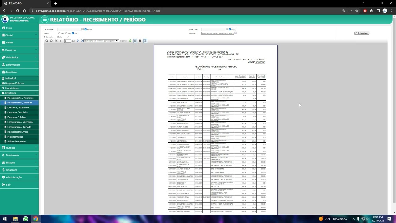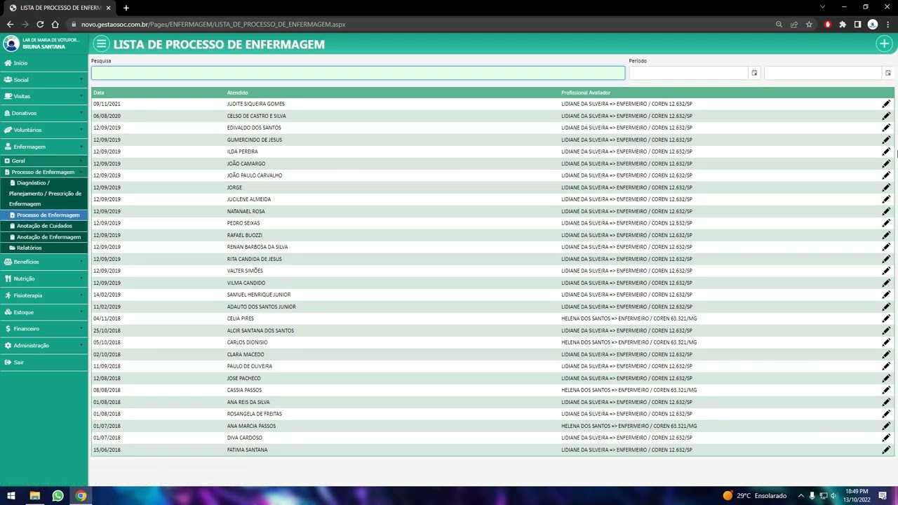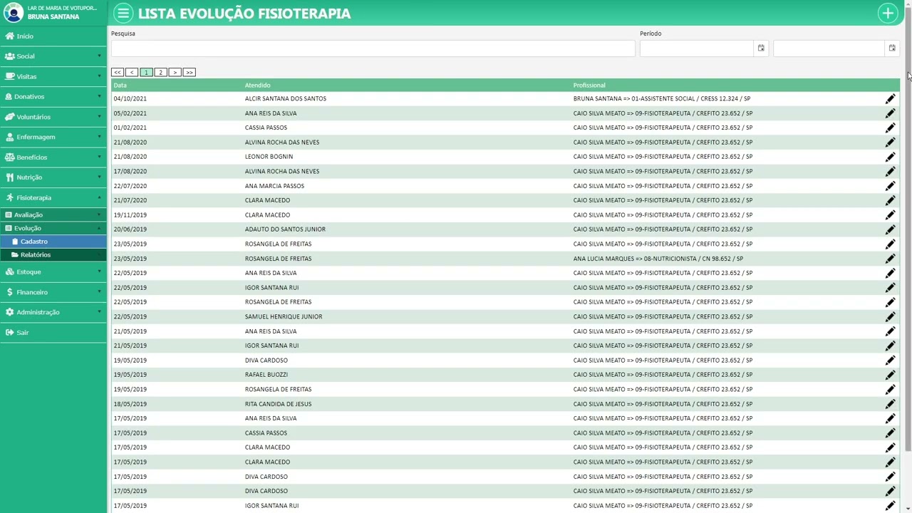 Visão geral do cadastro de pacientes no sistema