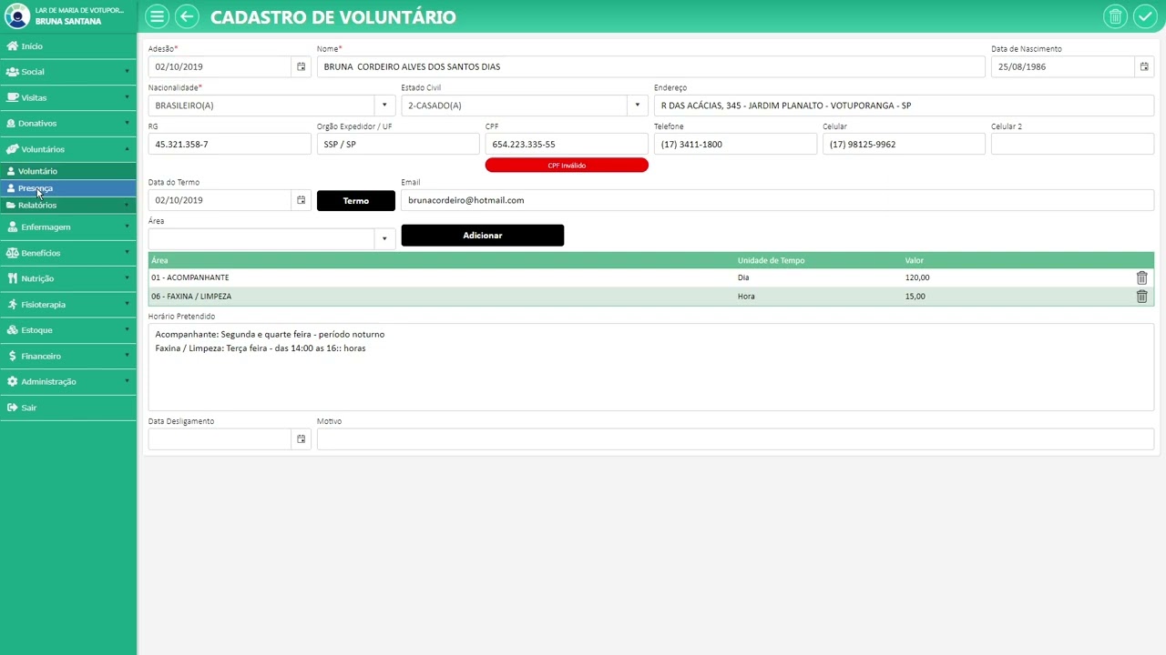 Visão geral do módulo: Voluntários
